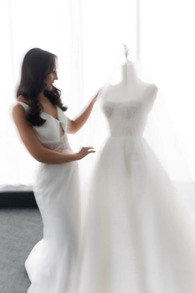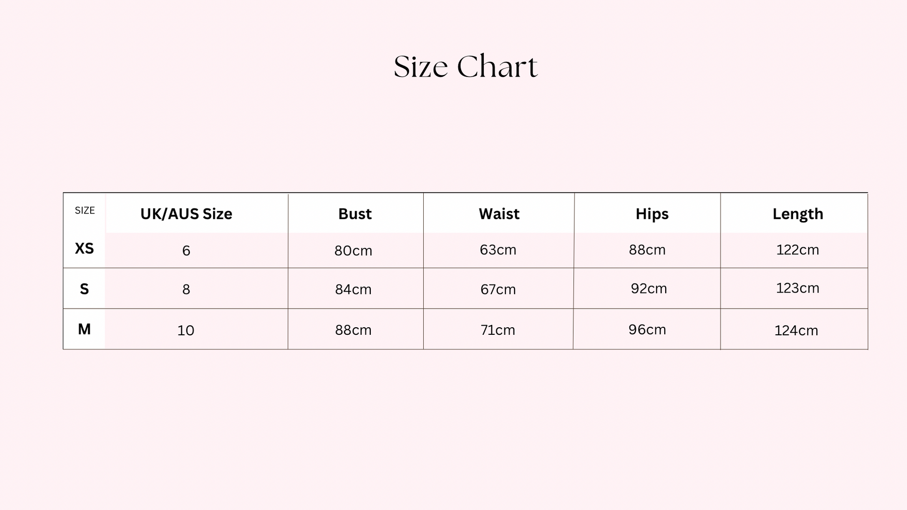 Tailored to hug the bust and hips, the dress flows into a loose fit through the skirt. It features an invisible zip and e-hook closure at the back, making it not suitable for wearing with a bra. The fabric does not provide any stretch in the fit.