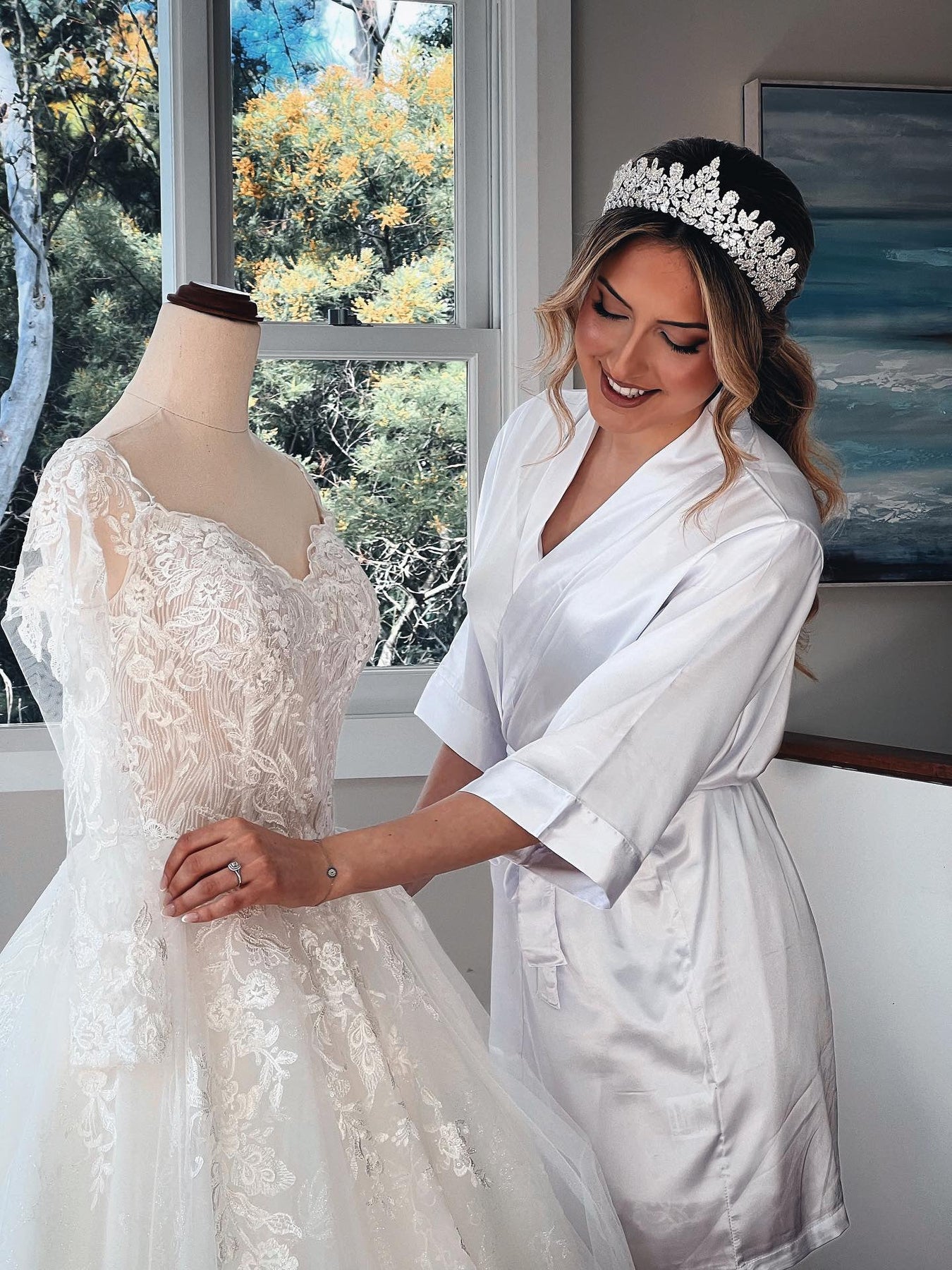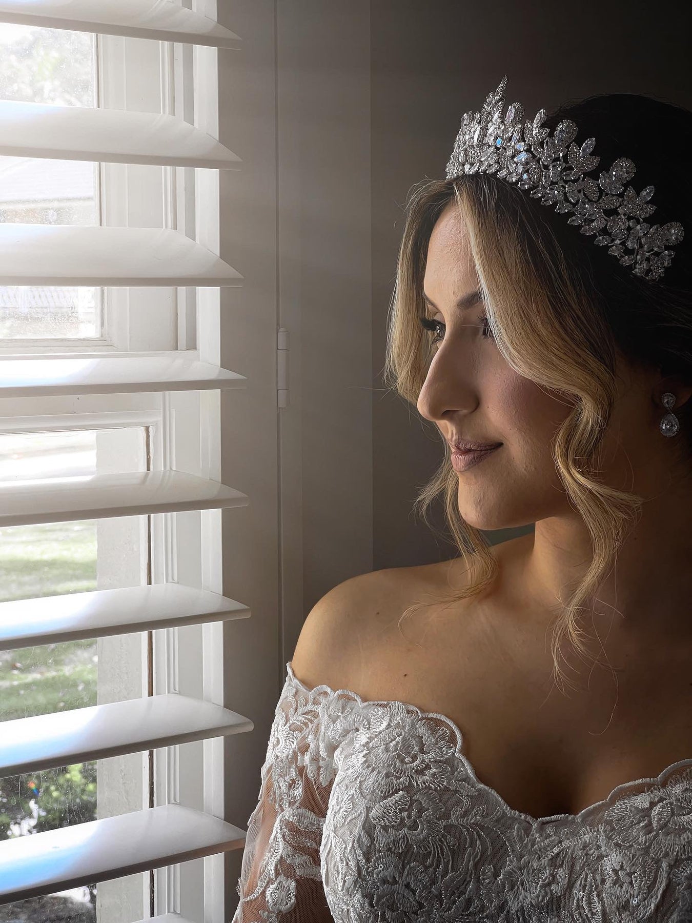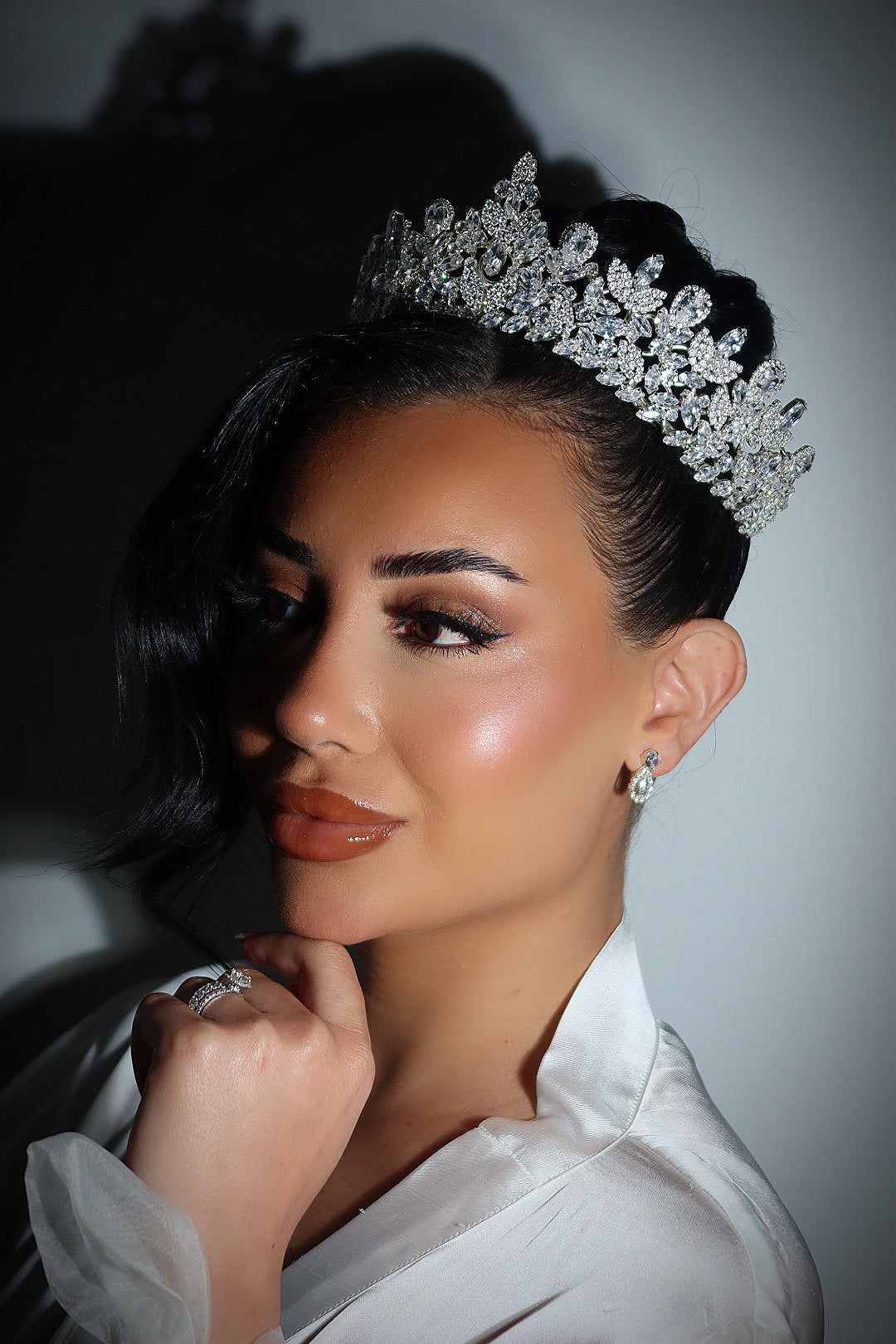This cubic zirconia tiara adds a touch of elegance and glamour to any bridal look. Perfect for making a statement on your special day.