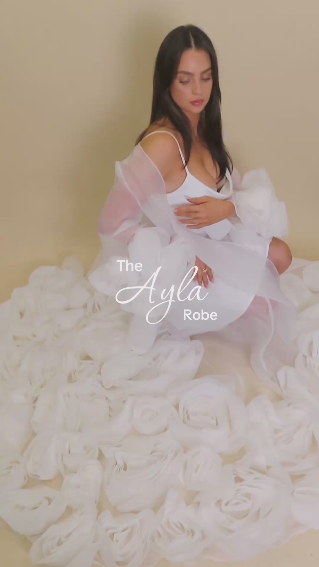 Designed for the modern bride with an appreciation for artistry and refinement, Ayla captures the essence of effortless romance. The robe’s soft transparency drapes gracefully over the body, while the sculptural florals add texture, volume, and movement, evoking the beauty of a blooming garden in motion.